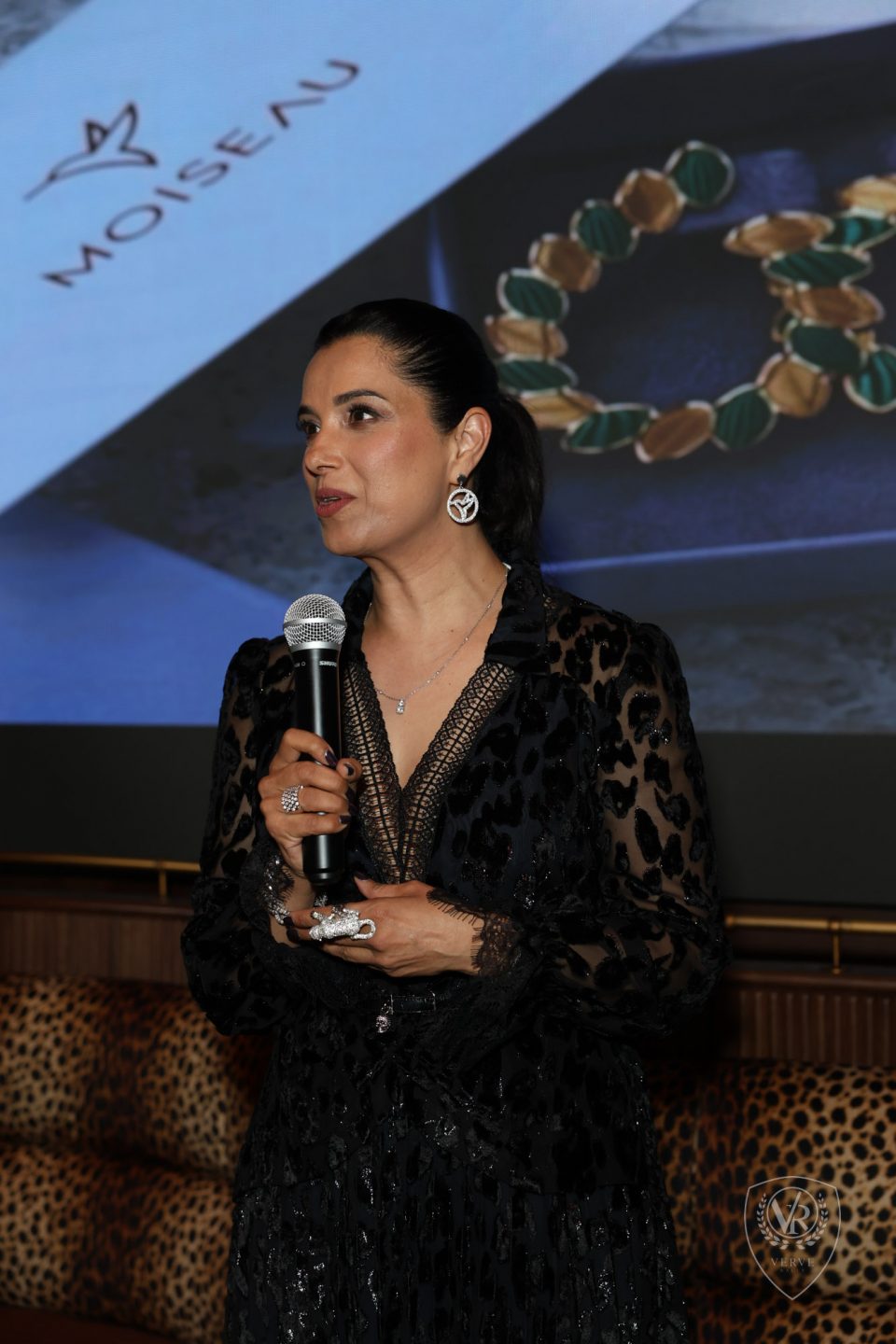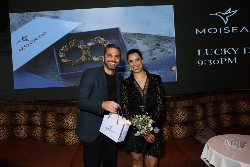 Mazen was presented with a pair of Moiseau’s signature gold-plated emerald earrings, an exquisite piece of craftsmanship, destined for someone equally refined.